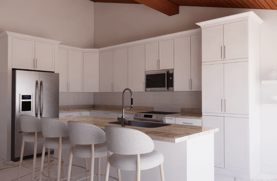 Classic shaker cabinets, including white shaker options, provide clean lines and versatile appeal for both residential and commercial interiors.